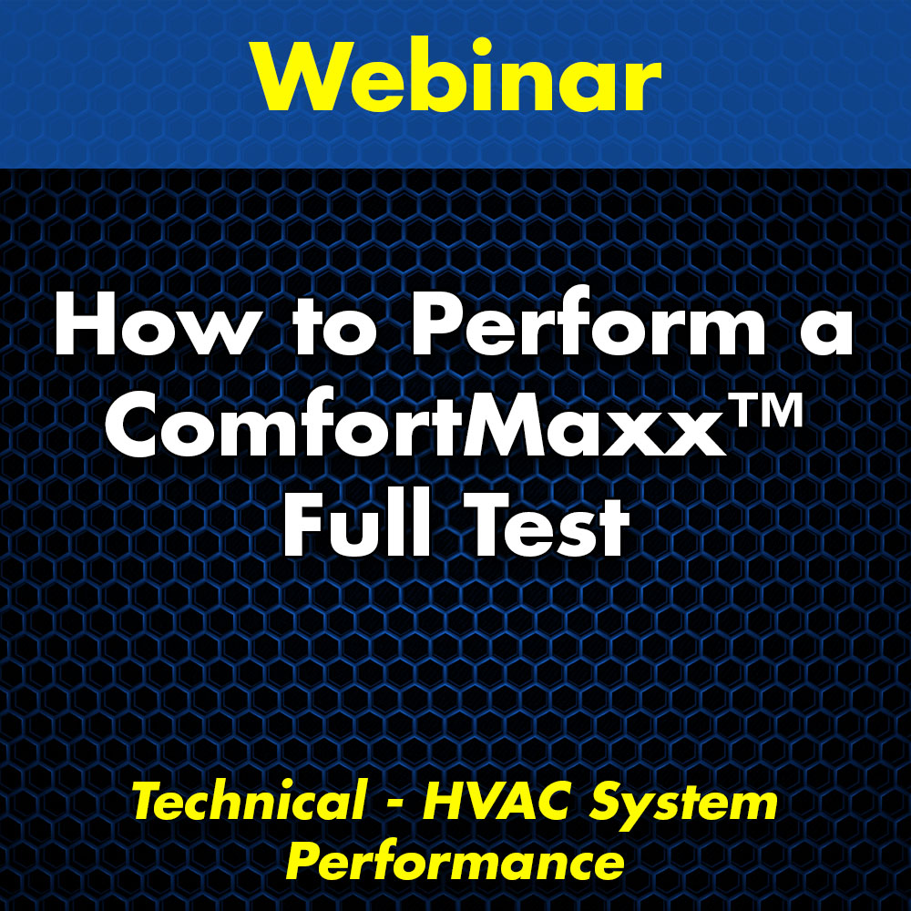 In this webinar, Jeff Sturgeon will be discussing the different testing requirements by system type as well as reviewing the complexities of determining the correct locations for measuring temperatures in residential and commercial systems. A review of the proper instruments to be used for all ComfortMaxx™ Full Tests for Residential and Commercial split and package systems up to 20 tons. A section of important instrument care, self-check practices as well as calibration habits that will give you the confidence that the test will be accurate as possible. You will learn how to use the ComfortMaxx reports to inform the customer, inform yourself and technicians with a consistent tool as well as building a scope of work so that all renovation opportunities are captured. And finally the use of ComfortMaxx reports to validate, track install and service tech trends, as well and most important, you will put yourself far above all of your competition.
